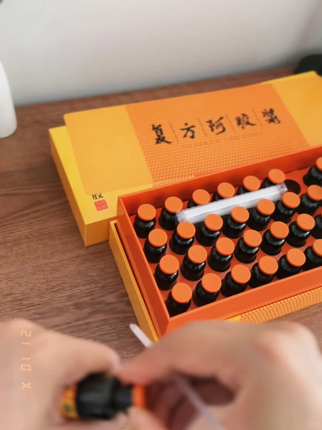 1️⃣ **饮用方式:** 建议用温水冲服复方阿胶浆,有助于身体吸收,同时多喝水以保持身体水分平衡。